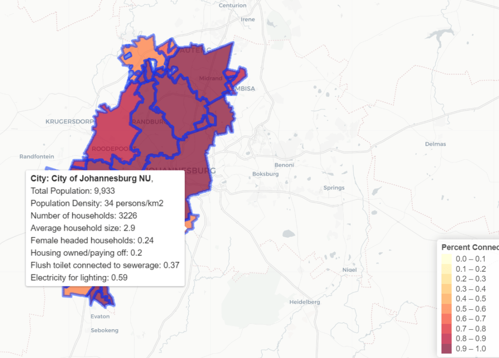 - Acquire the necessary shapefile: This step can often take longer than you think. Governments are frequently the source of the shapefile since they’re the ones who usually employ the surveyors + engineers necessary to build the file. https://census2011.adrianfrith.com/place/798 (Place where I acquired the necessary files to do my project on Johannesburg.)